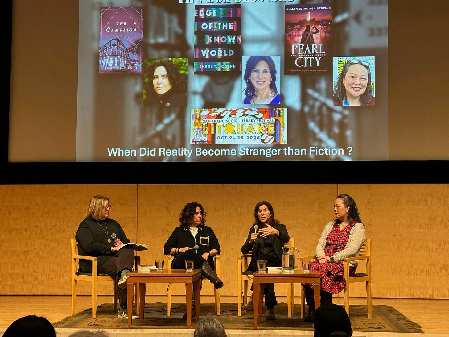 What makes it all worth it are the events I did as a part of Litquake, San Francisco’s annual literary festival. I’m a member of Litquake’s board of directors, but I’m also a participant. This year, I moderated a panel of sci-fi/horror writers and was interviewed as part of my own event about what happens when reality is stranger than fiction. Both events were well attended, but it was the interaction with the audience that made me remember why I’m a writer. People are starved for good stories and for human contact. Whether I was posing questions or answering them myself, the engagement with others was both inspiring and humbling. Actors, writers, musicians—we all wear our art on our sleeves, and to face an audience is to be vulnerable.
